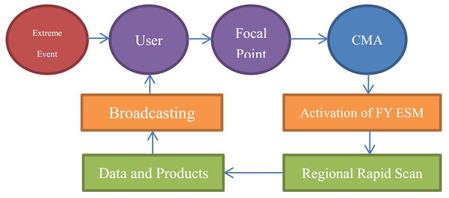 An international user may request CMA to activate FY ESM before, during and after an extreme event such as
