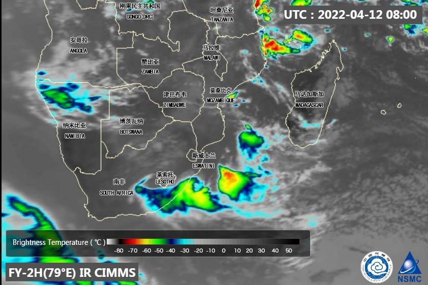 Enhanced IR Image by FY-2H showed lower than -60°C Cloud Top Temperature at 00:00 (UTC) on April 12, 2022.